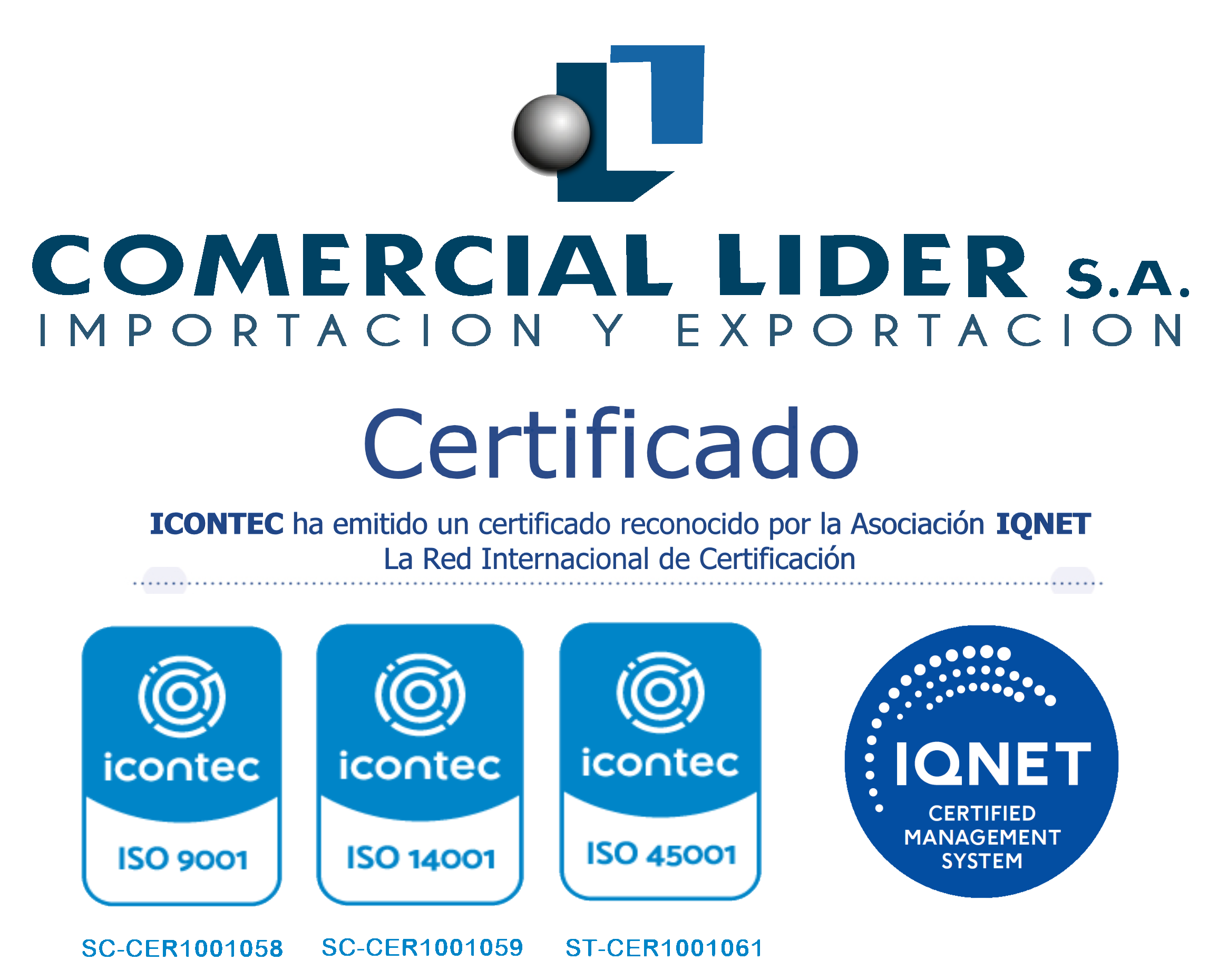 COMERCIAL LIDER S.A. PASÓ SATISFACTORIAMENTE LA CERTIFICACIÓN TRINORMA: